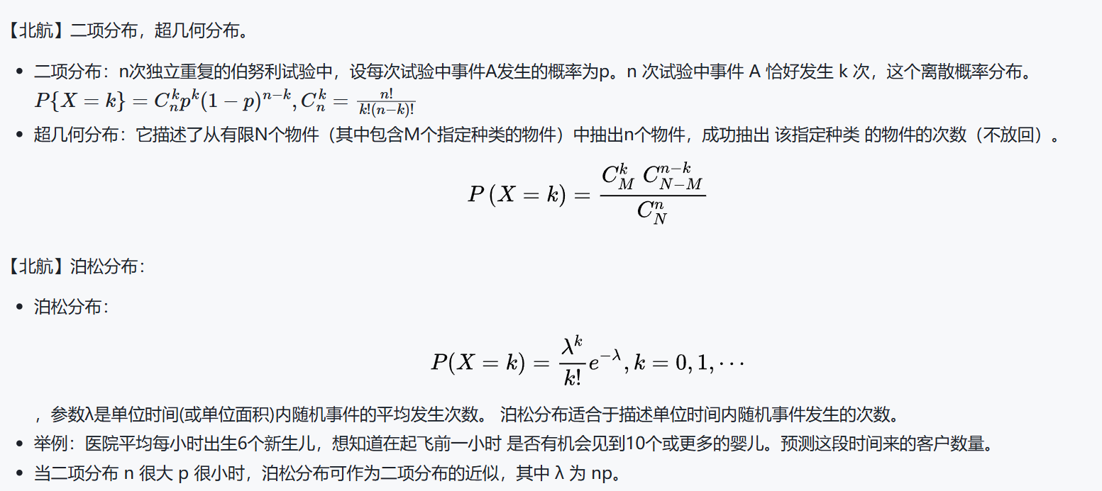 - 中心极限定理:多个随机变量的总和(或平均值)趋向于正态分布,即使原始随机变量不满足正态分布,这是中心极限定理的重要推论。